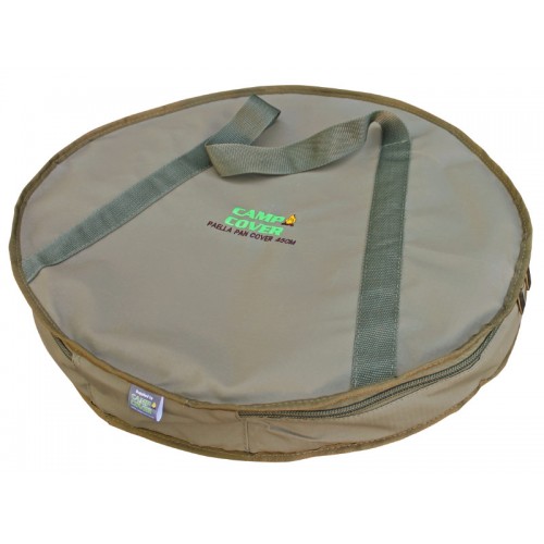 The bag is manufactured with heavy-duty ripstop material, padded isolation, as well as heavy-duty, zips, sliders and webbing carry handles. The 45 cm cover is suitable for the Bush Chef paella pan (or similar) and the 47 cm cover is suitable for the Cadac paella pan (or similar).